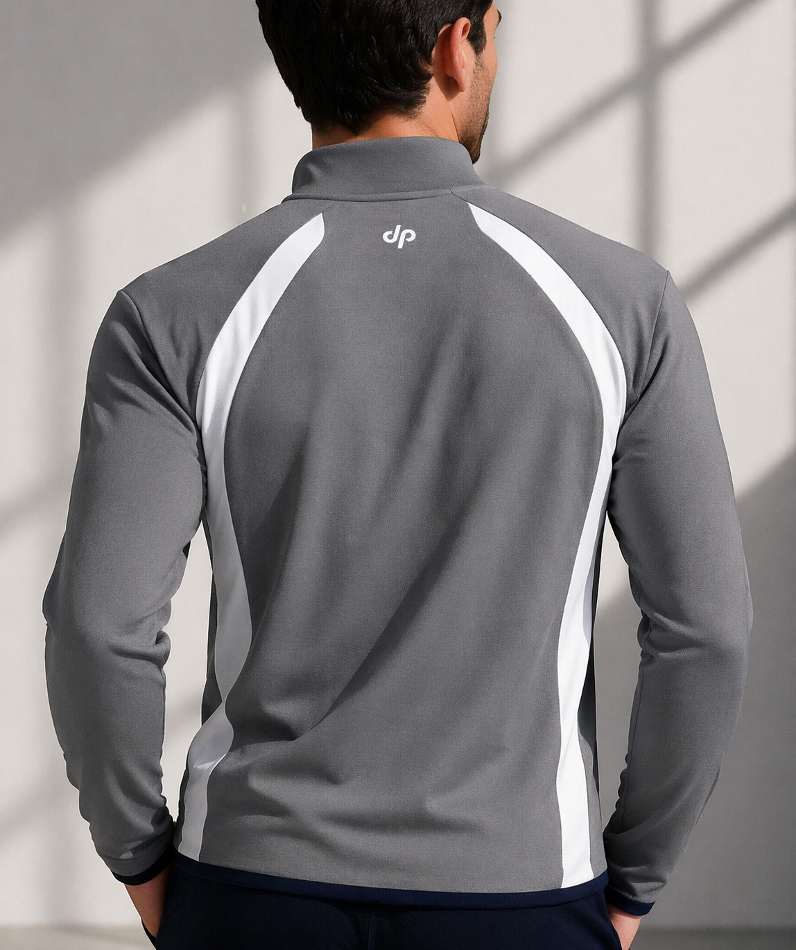 Erkek Double Face Kumaş Fermuarlı Dik Yaka Füme Beyaz Eşofman Takımı - 7942