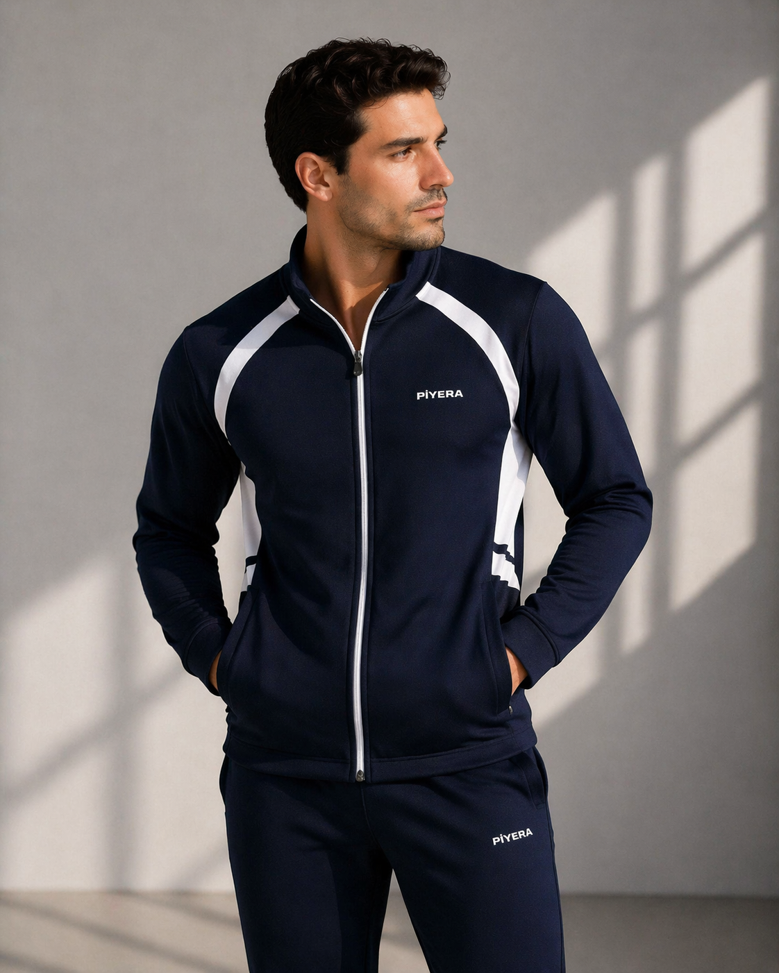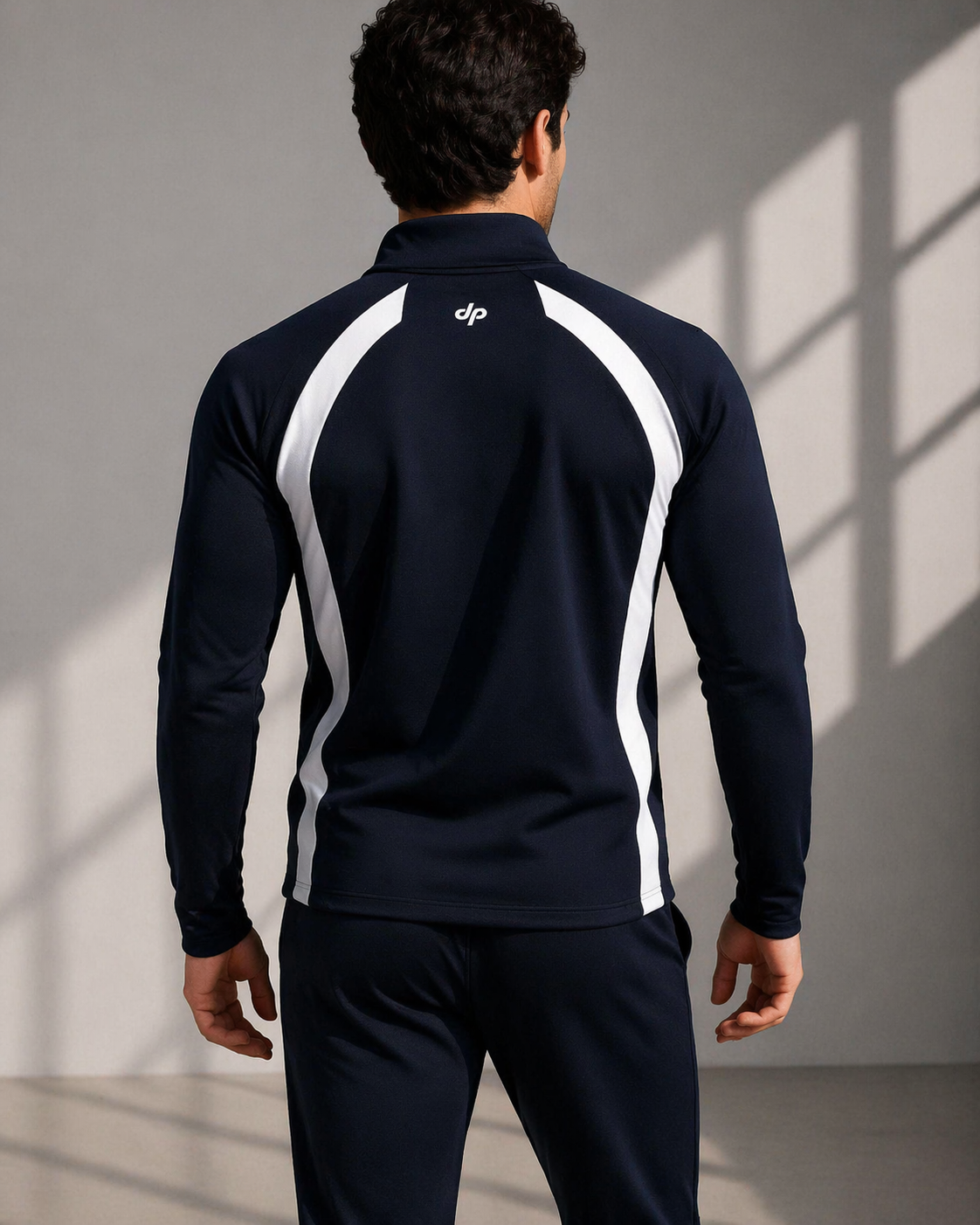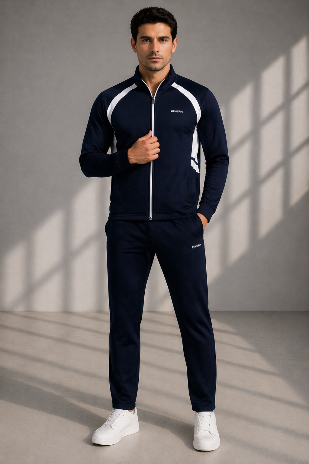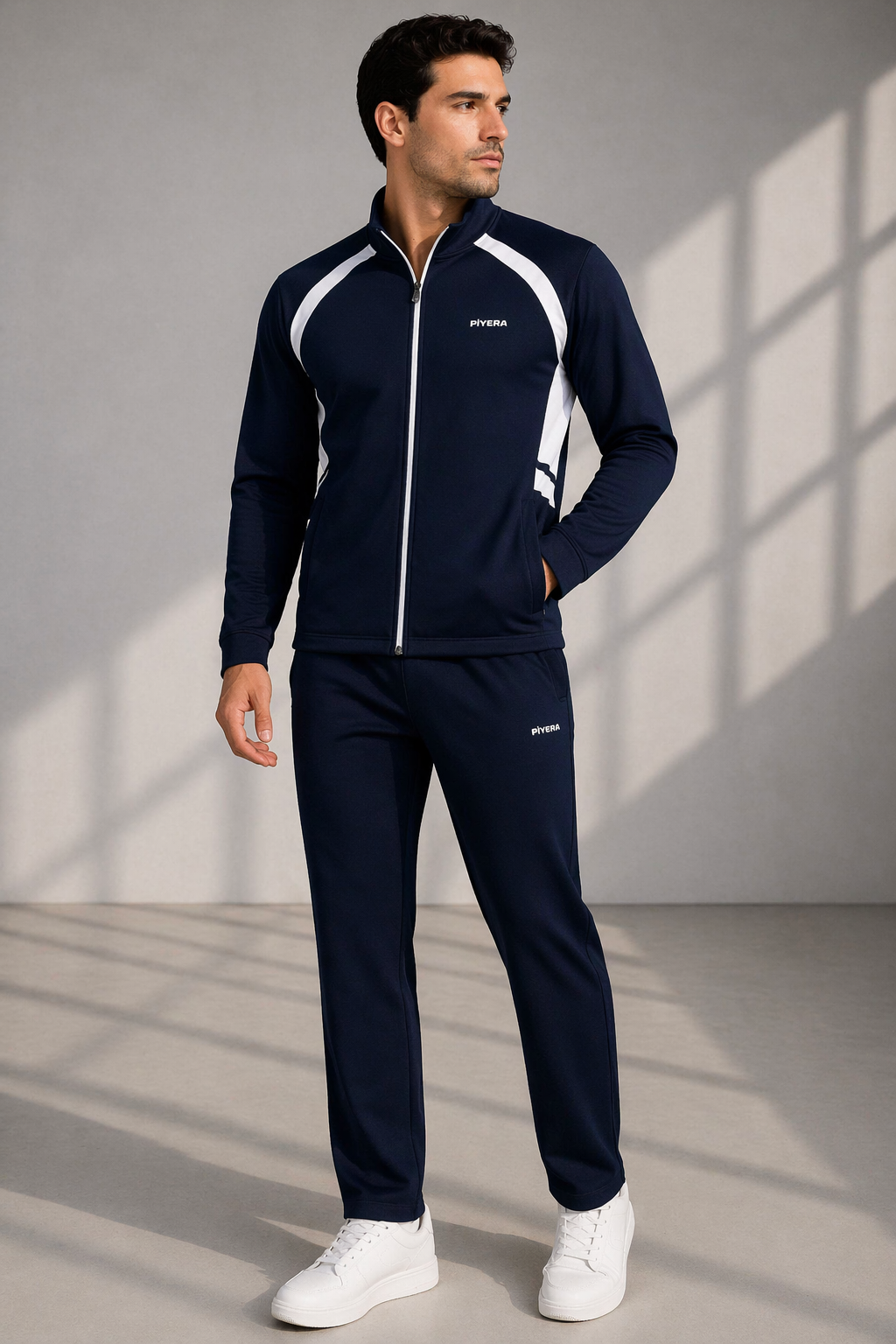 Erkek Double Face Kumaş Fermuarlı Dik Yaka Lacivert Beyaz Eşofman Takımı - 7942