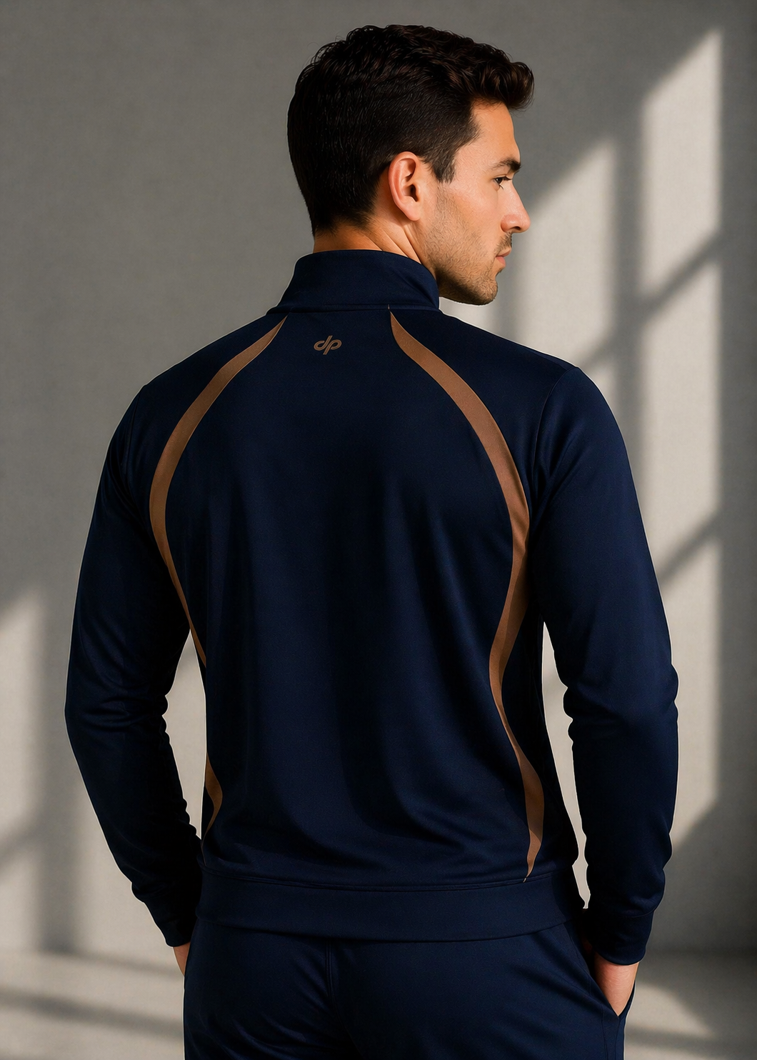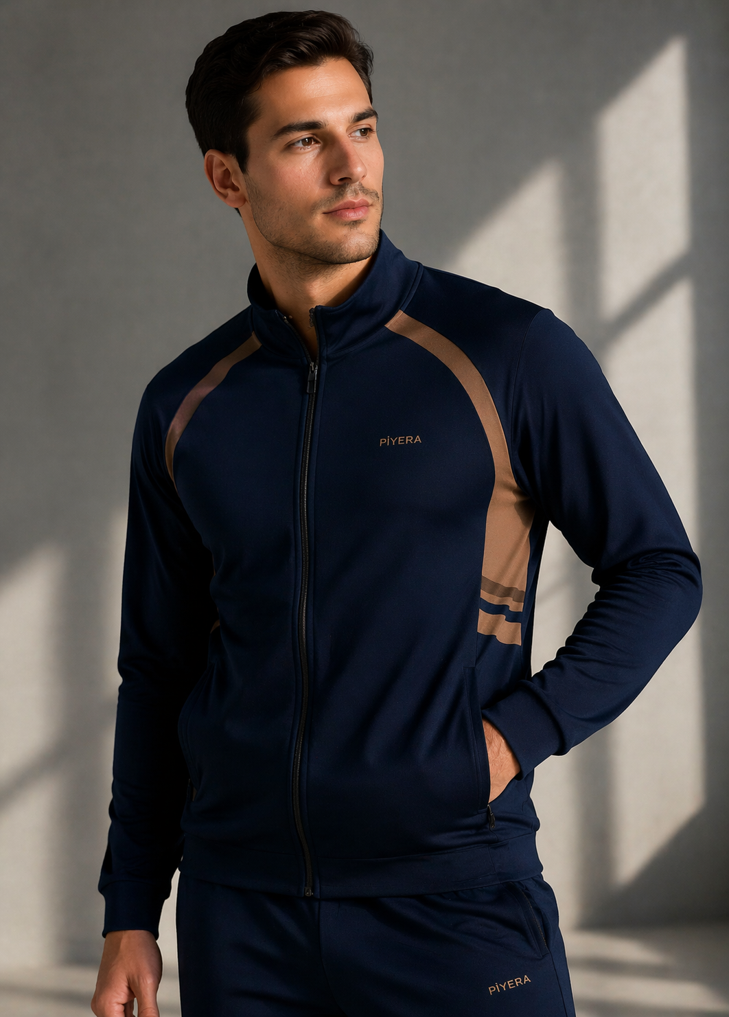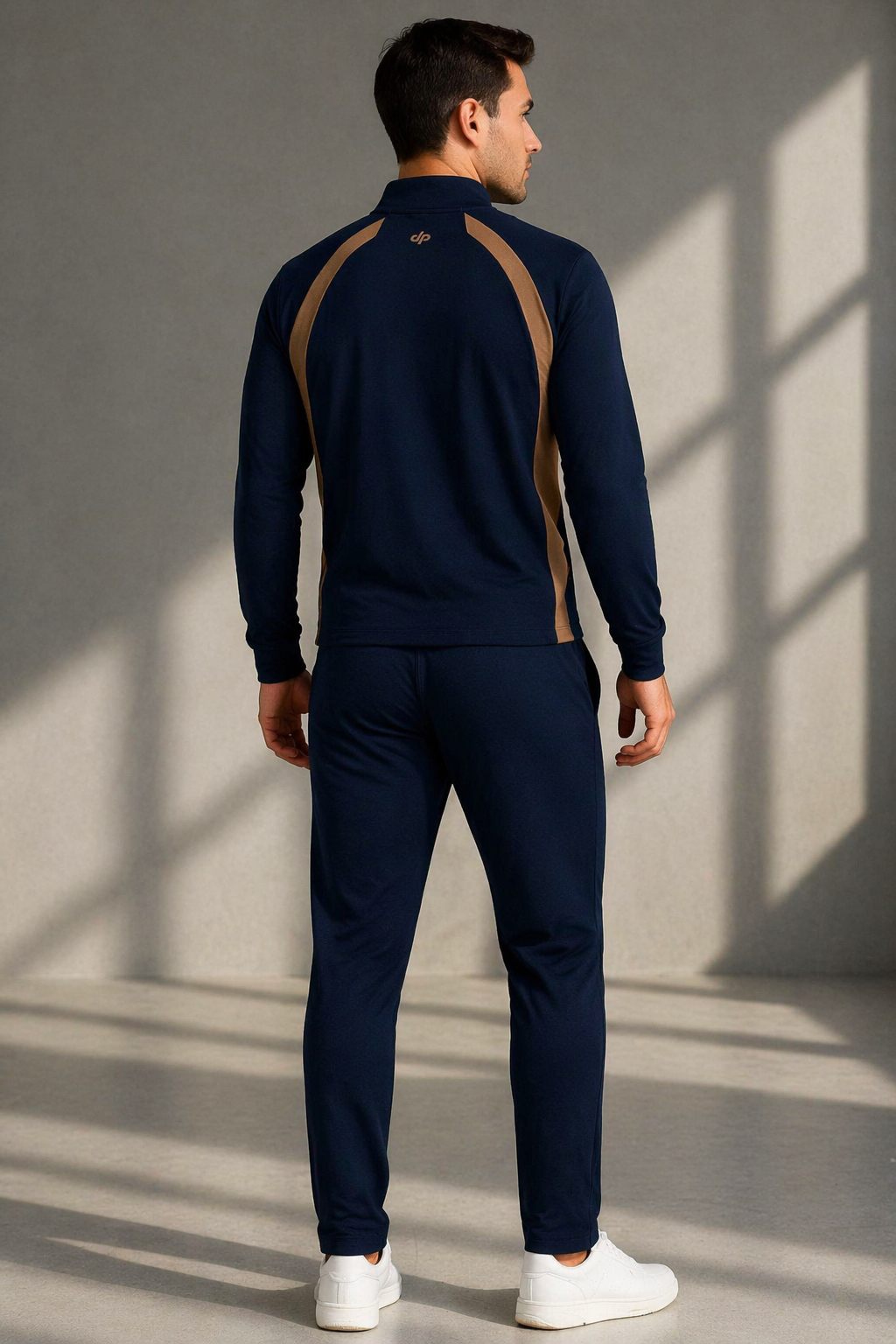 Erkek Double Face Kumaş Fermuarlı Dik Yaka Lacivert Kahverengi Eşofman Takımı - 7942