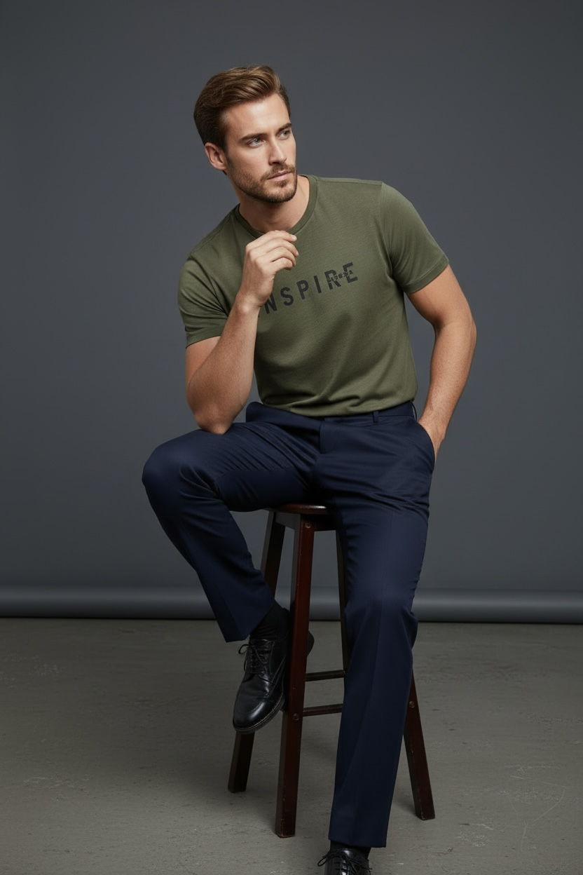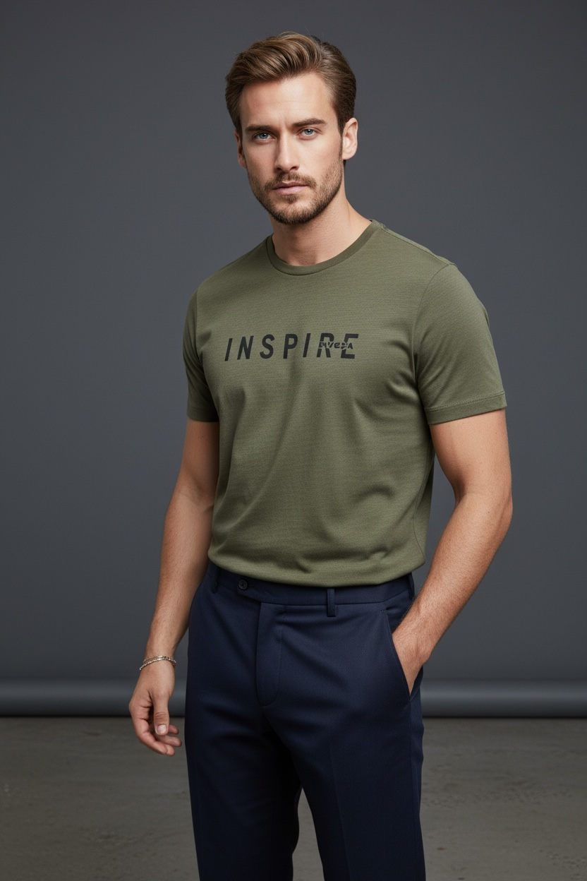 Günlük şıklığı ve rahatlığı bir arada sunan Erkek Koyu Haki Inspire Baskılı Süprem Tişört, modern tasarımı ve kaliteli kumaşı ile gardırobunuzun vazgeçilmez parçalarından biri olmaya aday.