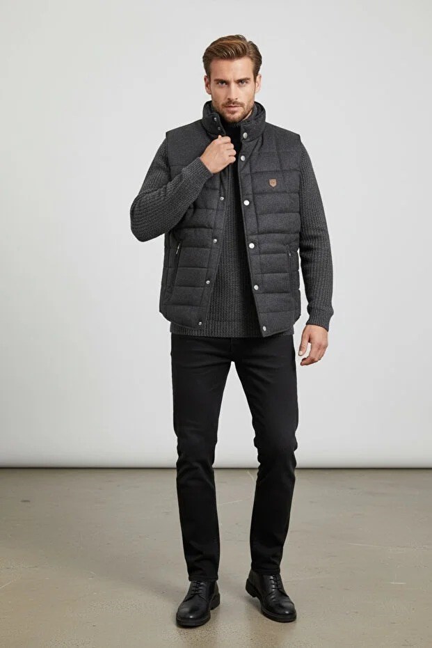 Çift cepli tasarımı küçük eşyalarınızı güvenle taşımanıza yardımcı olur. Orta kalınlıktaki dolgu yapısı mevsim geçişlerinde ideal sıcaklık dengesi sağlarken rüzgara karşı ekstra koruma sunar. Kolsuz tasarımı sayesinde hareket özgürlüğünü kısıtlamadan rahat bir deneyim sağlar.