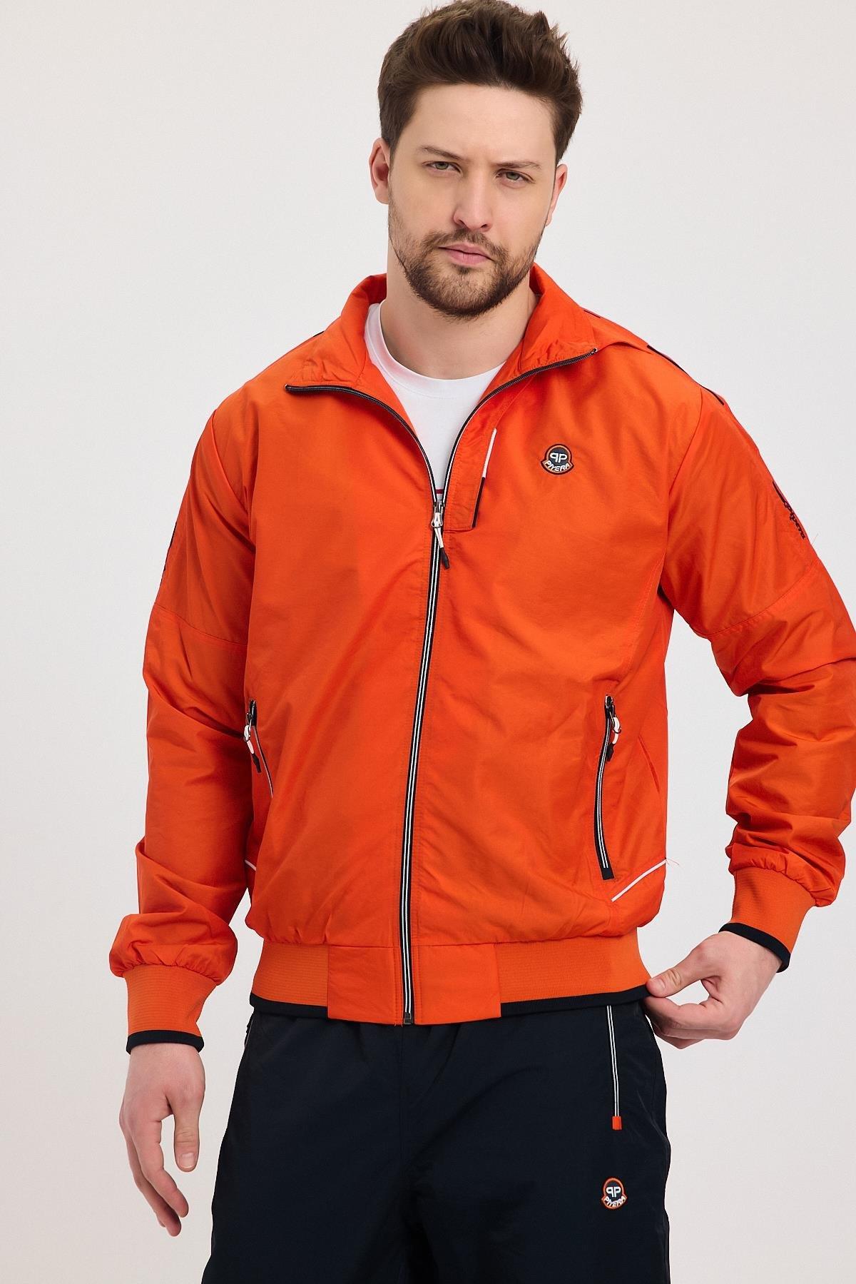 Erkek Turuncu Paraşüt Kumaş Dik Yaka Fermuarlı Eşofman Takımı - 4045
