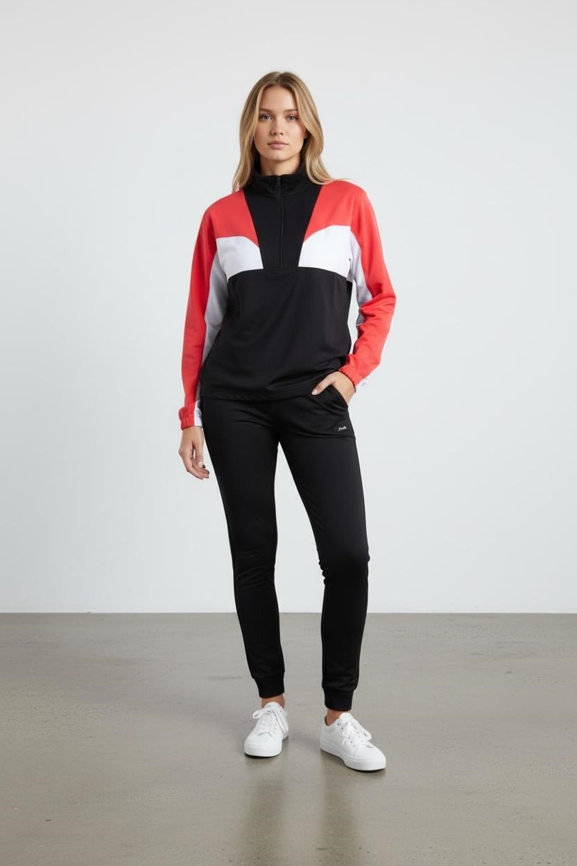 Kadın İki İplik Dik Fermuarlı Yaka Lastikli Paça Uzun Kollu Siyah Eşofman Takımı - 7774