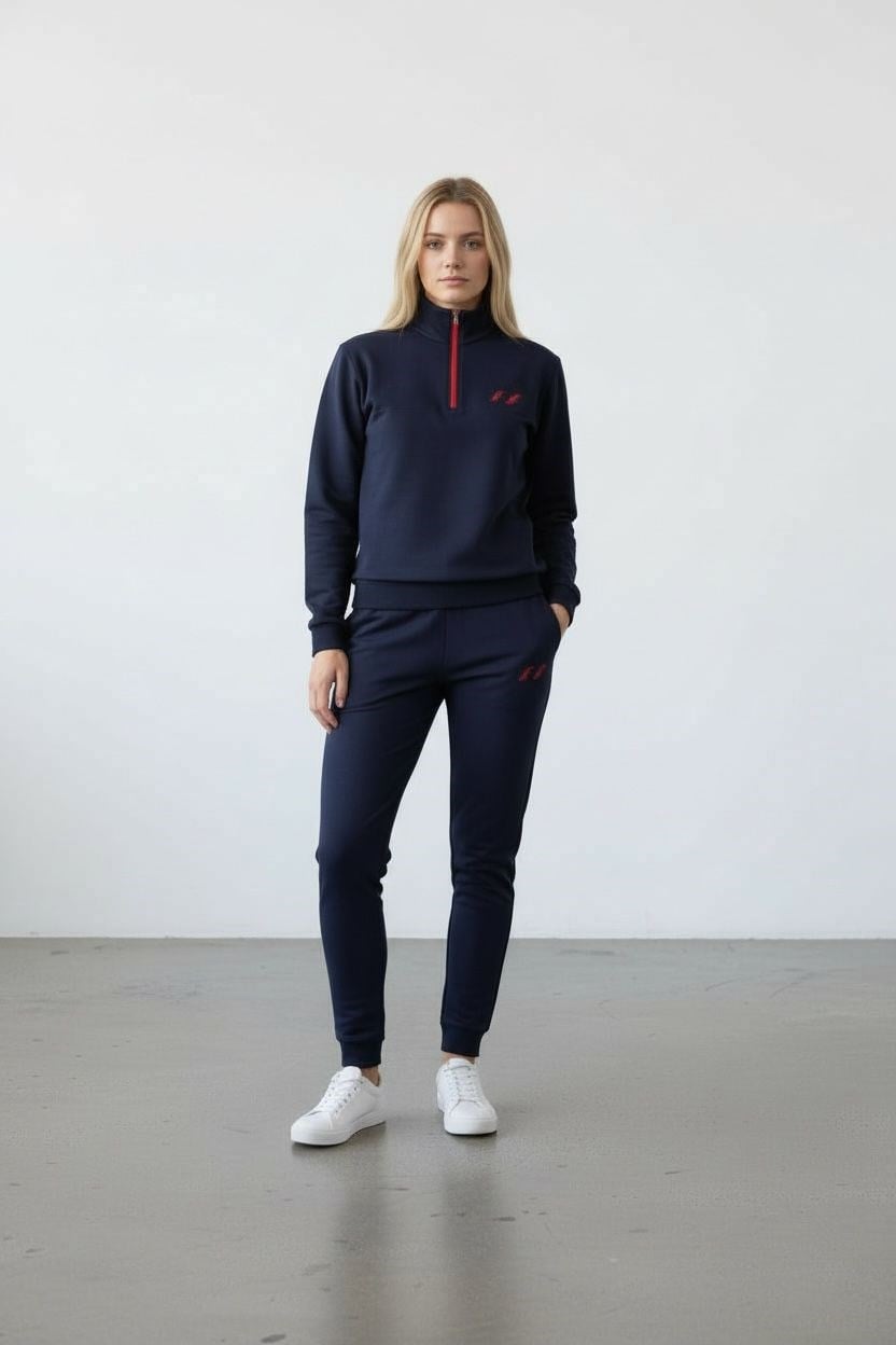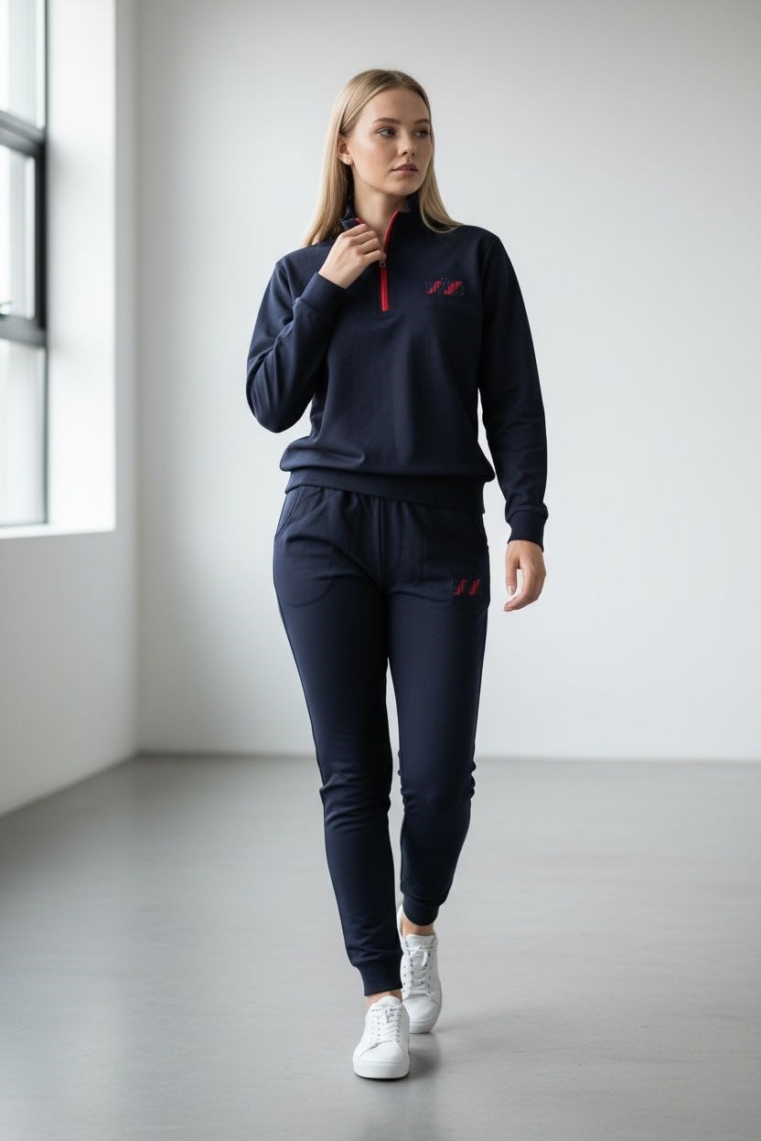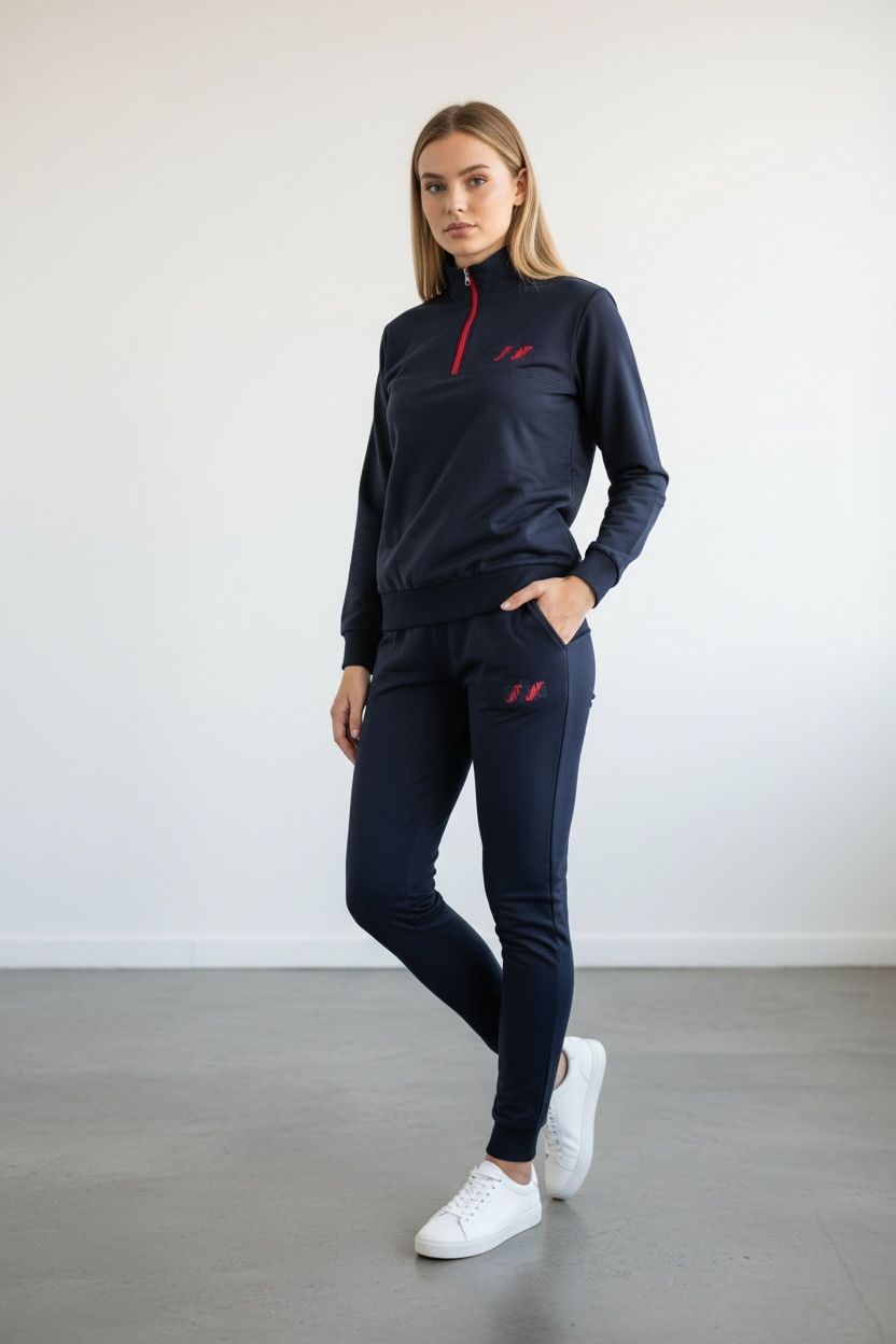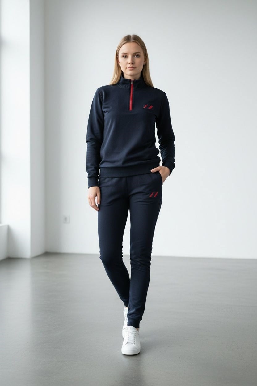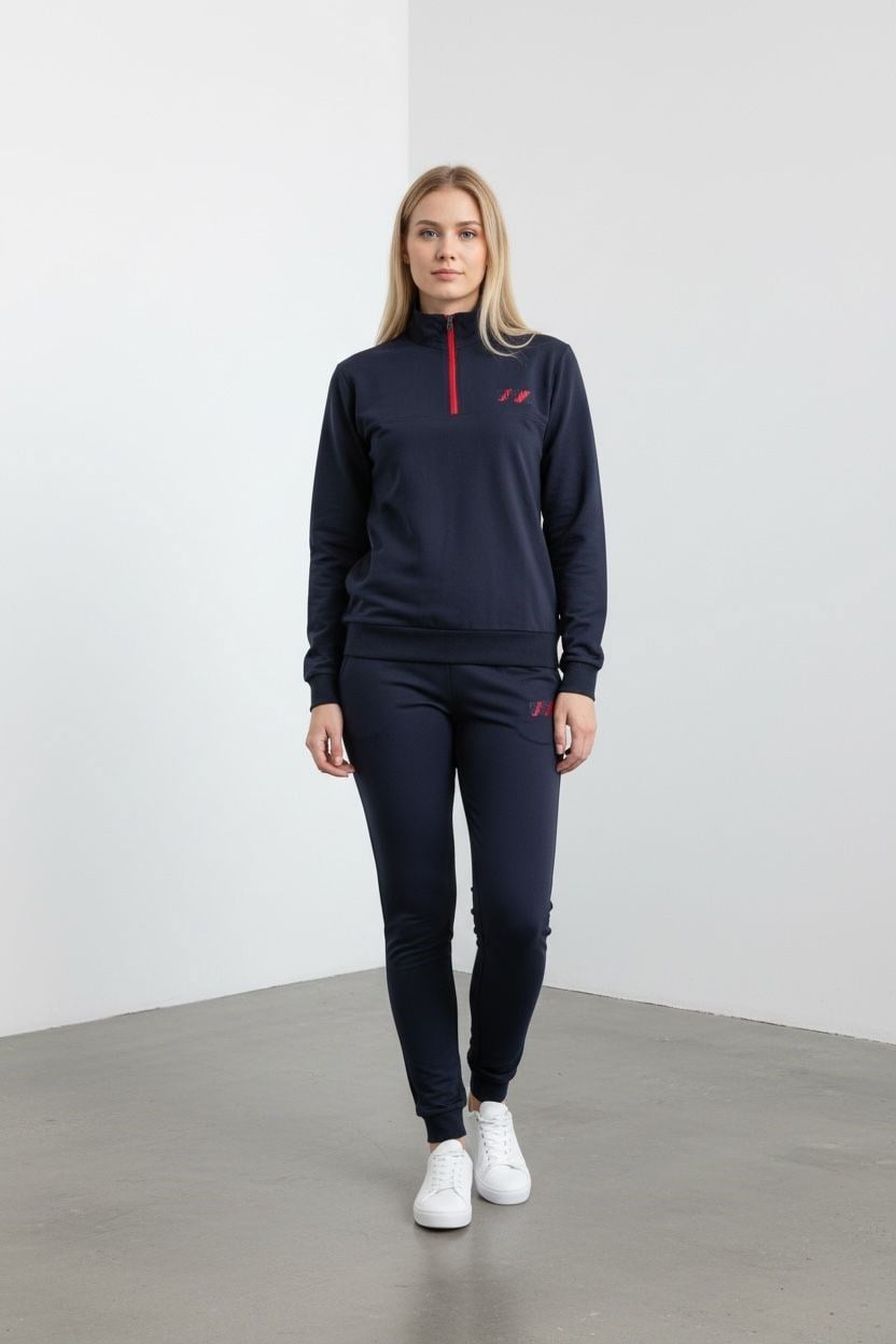 Kadın Lacivert İki İplik Dik Yaka Fermuarlı Eşofman Takımı - 76488