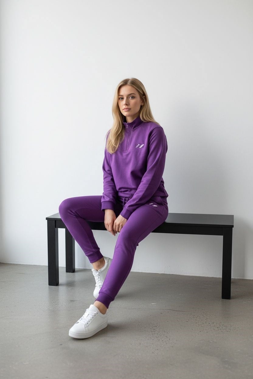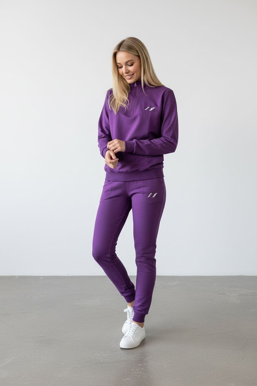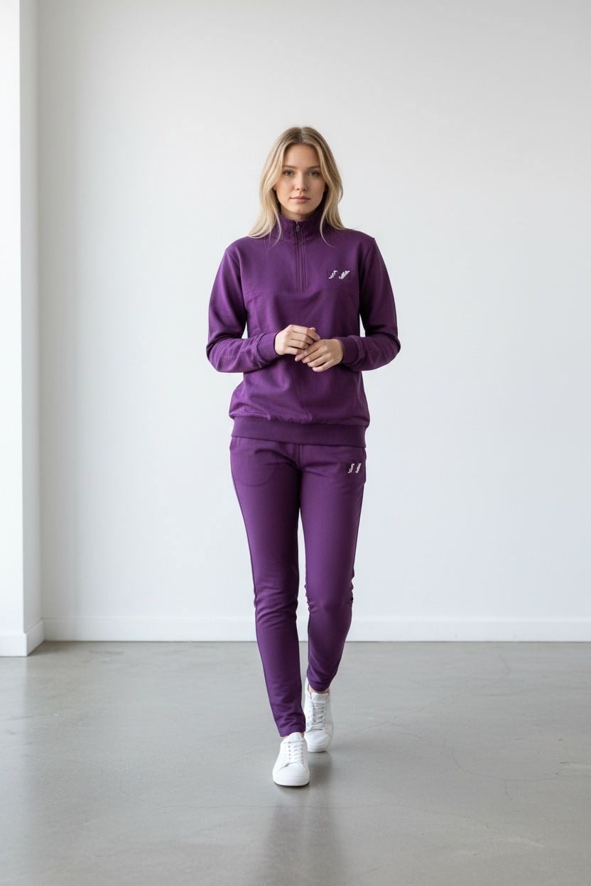 - Yüksek bel tasarımı ile rahat bir kullanım sunar ve vücut hatlarını zarifçe sarar.; - Standart kol tipi, günlük aktivitelerinizde konforlu hareket etme özgürlüğü sağlar.; - Pamuklu materyal, cildinize nefes aldırırken yumuşak bir dokunuş sunar.; - Lastikli paça tasarımı, modern ve şık bir görünüm kazandırırken ayakkabı seçiminizi kolaylaştırır.; - Fermuarlı yaka detayı ile hem sıcak tutar hem de stil sahibi bir görünüm sağlar.; - Düz desenli mor renk, zamansız bir şıklık sunarak her ortamda dikkat çeker.; - Tekli paket içeriği sayesinde pratik bir şekilde satın alabilir ve kombin yapabilirsiniz.; - Çift cepli tasarım, küçük eşyalarınız için pratik saklama alanları sunar.; - 2 iplik dokuma tipi ile dayanıklılık ve uzun süreli kullanım vaat eder.; - Slim fit kalıp, modern siluetiyle vücut hatlarınıza uyum sağlayarak şık bir duruş sergiler.; - Yarım pat fermuar kapama şekli, kolay giyim ve çıkarma imkanına olanak tanır.; - Uzun kol boyu soğuk havalarda ekstra koruma sağlarken stilinizi tamamlar.; - Örme kumaş tipi esneklik ve konforu bir arada sunarak gün boyu rahat etmenizi sağlar.; - Uzun paça boyu