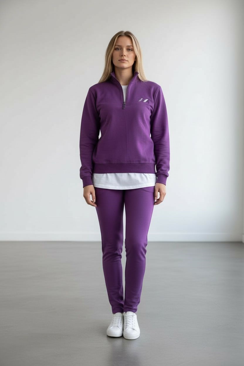 Kadın Mor İki İplik Dik Yaka Fermuarlı Eşofman Takımı - 76488