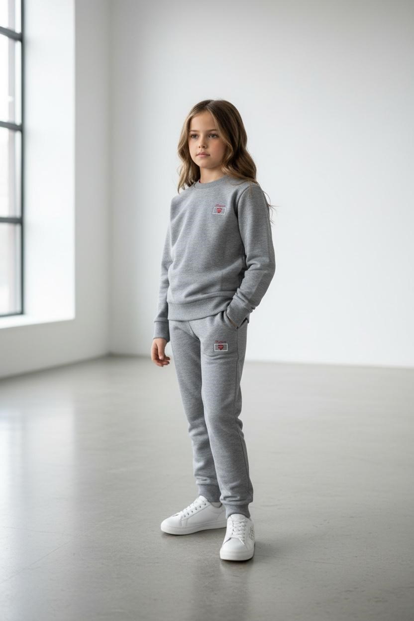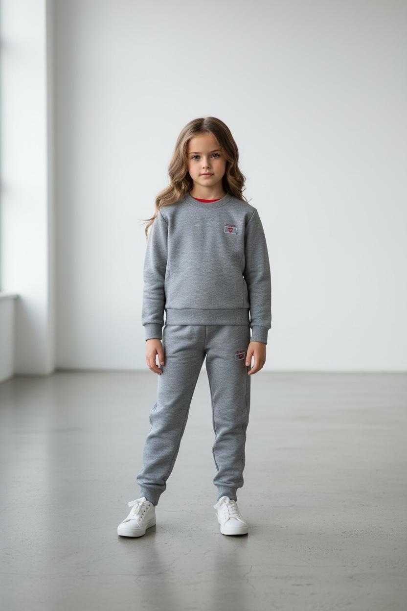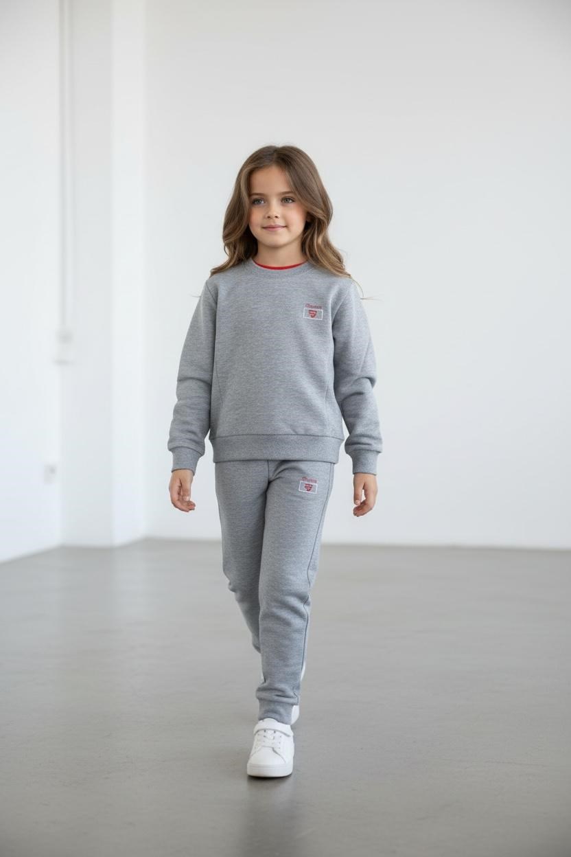 Kız Çocuk Gri Melanj Renk Kol Paça Lastikli Uzun Kollu Eşofman Takımı - 40003
