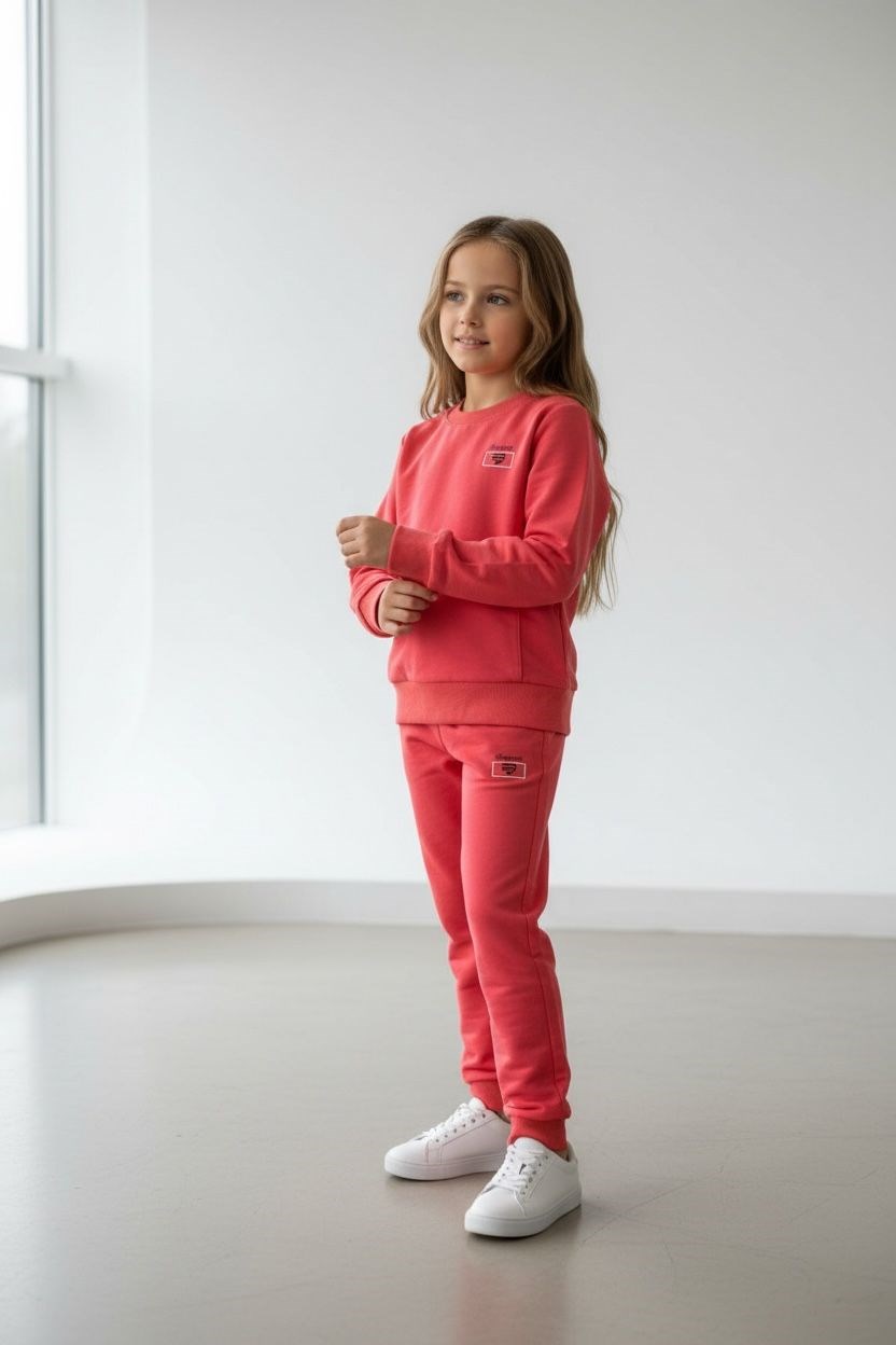 Kız Çocuk Nar Çiçeği Renk Kol Paça Lastikli Uzun Kollu Eşofman Takımı - 40003